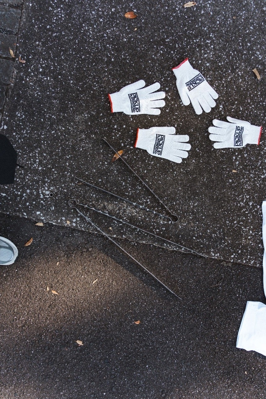 「PICK UP PLAYGROUND」では、プロジェクトロゴがプリントされた軍手・トング・ゴミ袋を製作し、イベントのゴミ拾いに使用します。このゴミ拾いキットは全国のプレイグラウンドでプロジェクトに参加したいプレイヤーや自治体を募集し、無償で寄贈、各地でのピックアップゲーム&ゴミ拾いイベントをサポートします。