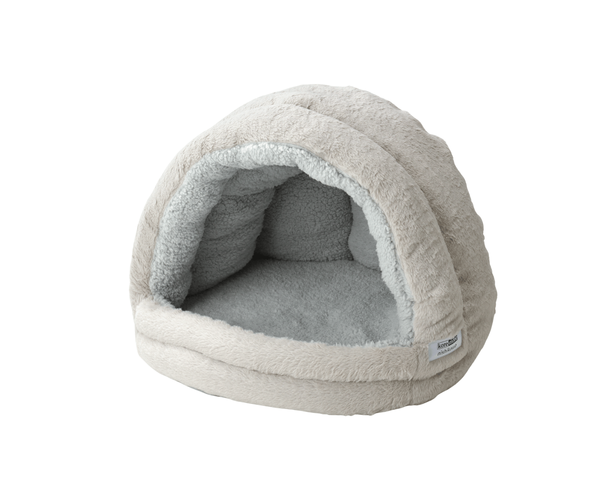 「庵」は、小柄な犬や子犬、シニア犬でも無理なく出入りできる低めの段差と、あごをのせやすい適度な厚みのクッションを備え、長時間でも快適に休める体に優しい寝心地を追求して開発しました。暖かなぬくもりに包まれるように中綿をたっぷりと使用したドーム型により、冬場でも安心して眠れる環境、犬や猫が穏やかに快適に眠れる空間を実現できました。快適な睡眠を第一に考え、こだわり抜いて作った「庵」が、犬や猫の毎日の眠りとくつろぎを支える存在となることを願っています。