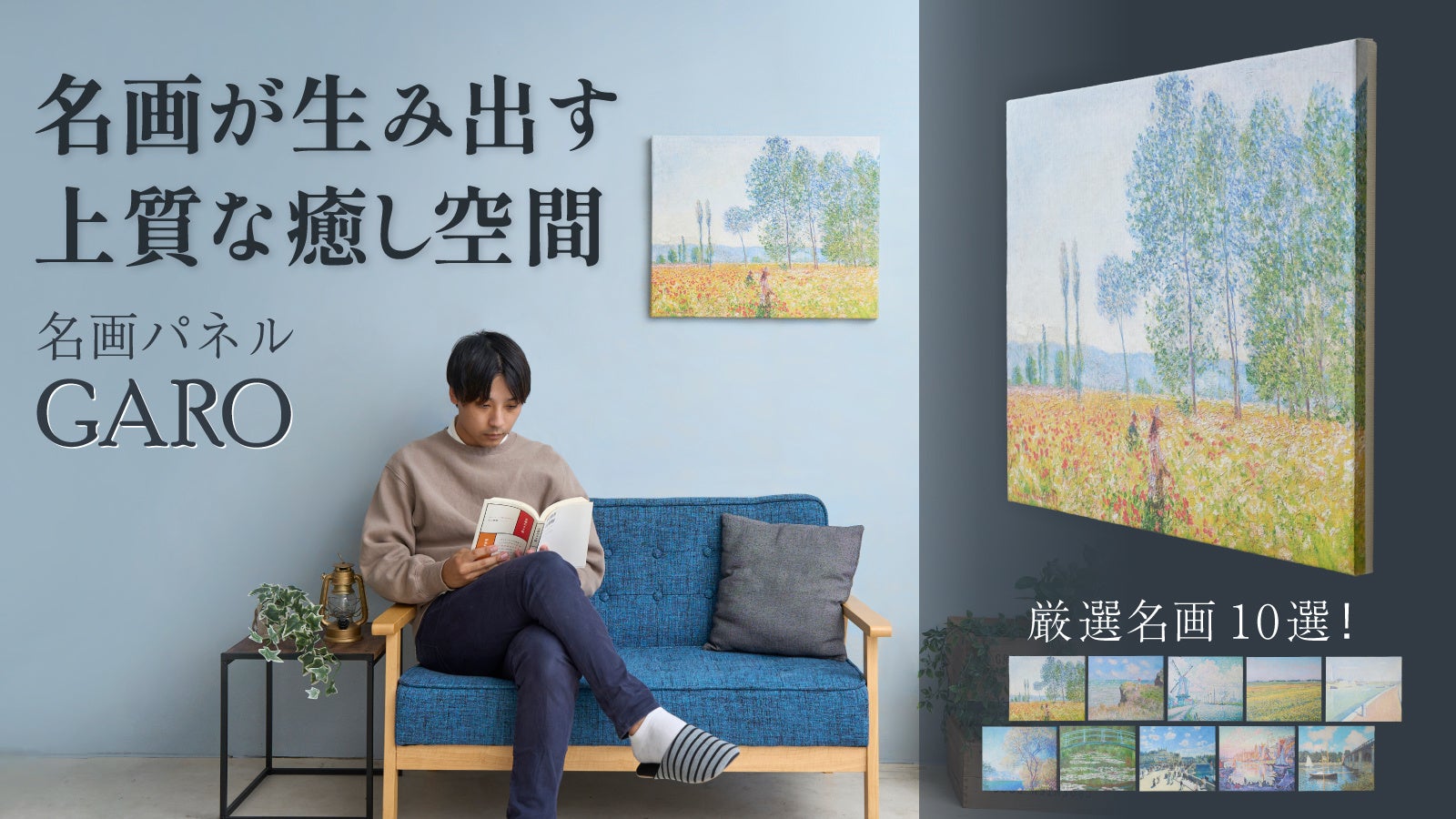 株式会社志村製函所は新しい試みとして、「癒やし」をテーマにお部屋を癒しの空間にさせる「名画パネルGARO」を開発いたしました。