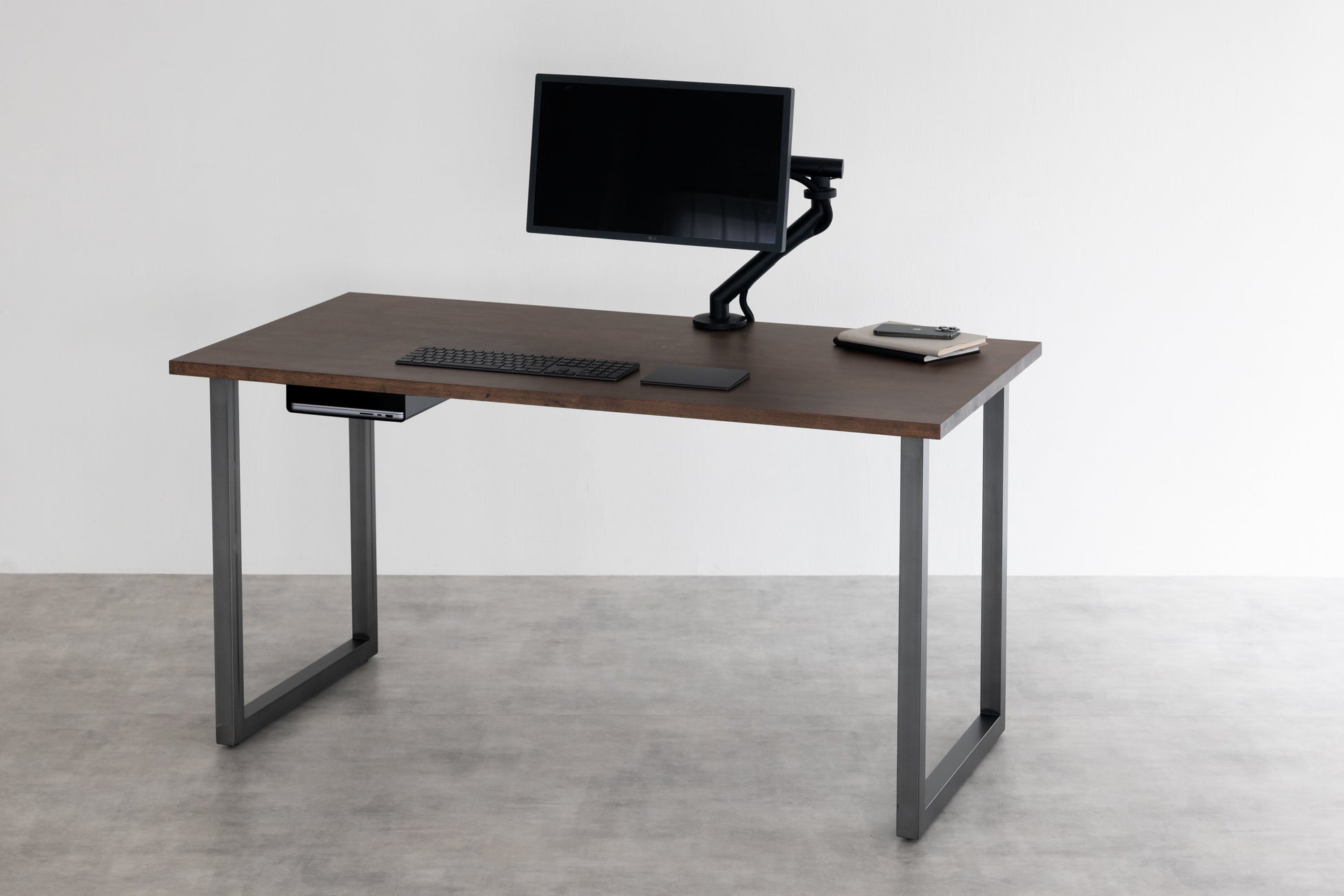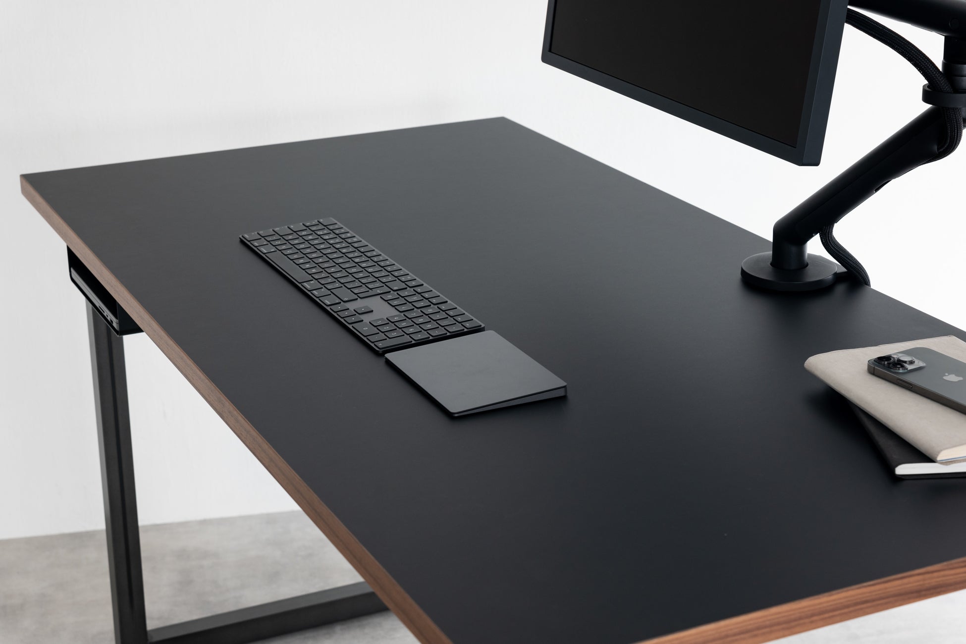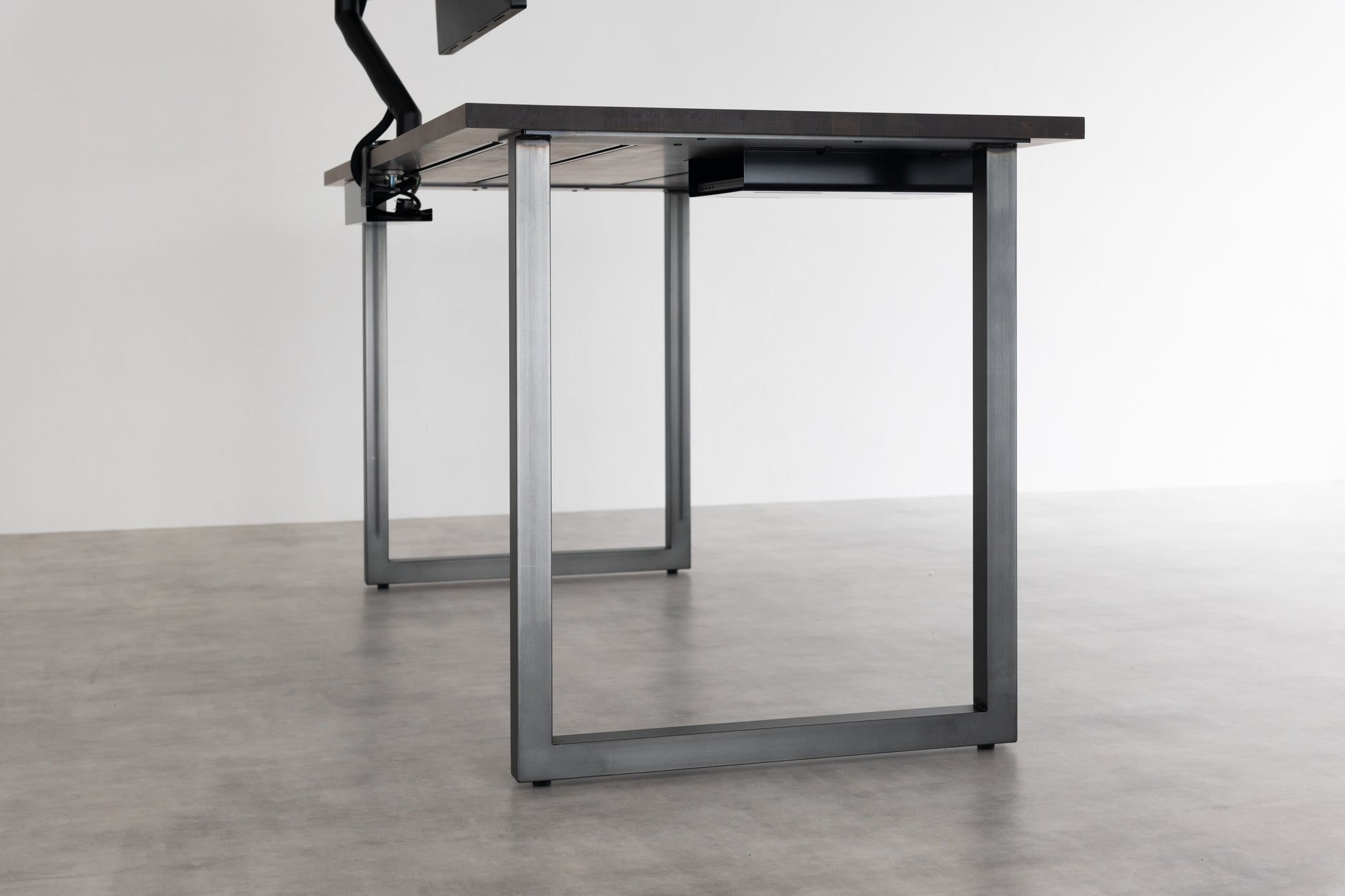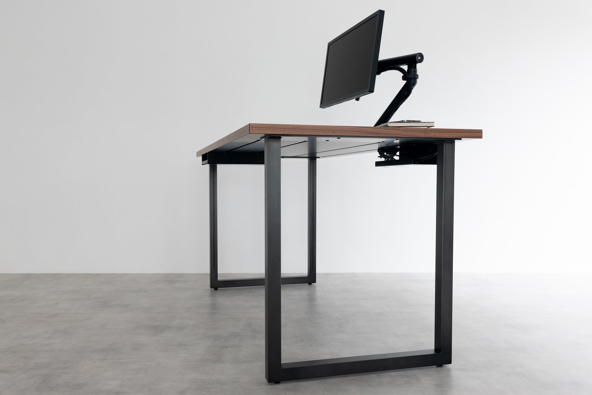 デスクの片側に設置されたウルトラワイドモニターやマルチモニターなどの重量級のモニターをしっかり支えるフレーム型の脚を採用したモデルです。