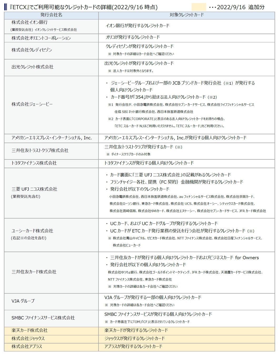 ETCが街なかで利用できる『ETCX』サービスで、ご利用可能なクレジットカードが追加になりました
