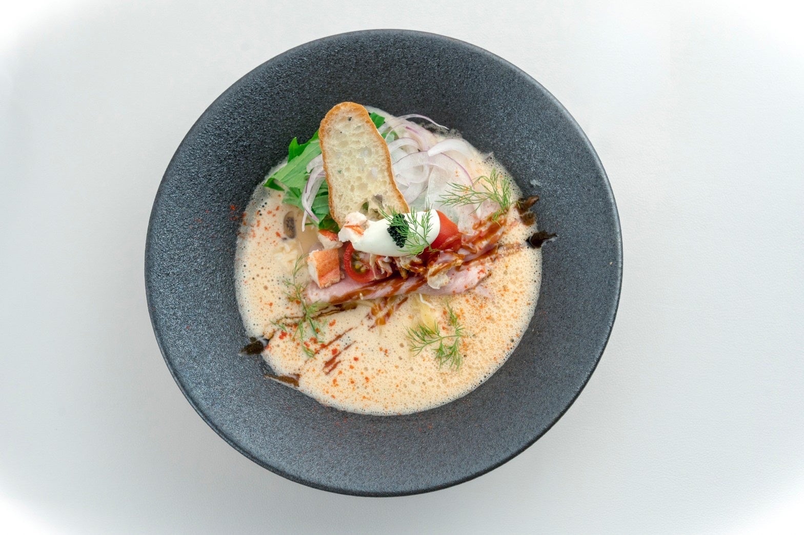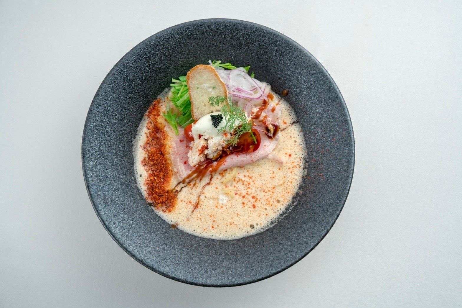 口いっぱいに海老の香りが広がる究極のスープで作られた全く新しい「フレンチラーメン」をぜひお楽しみください。