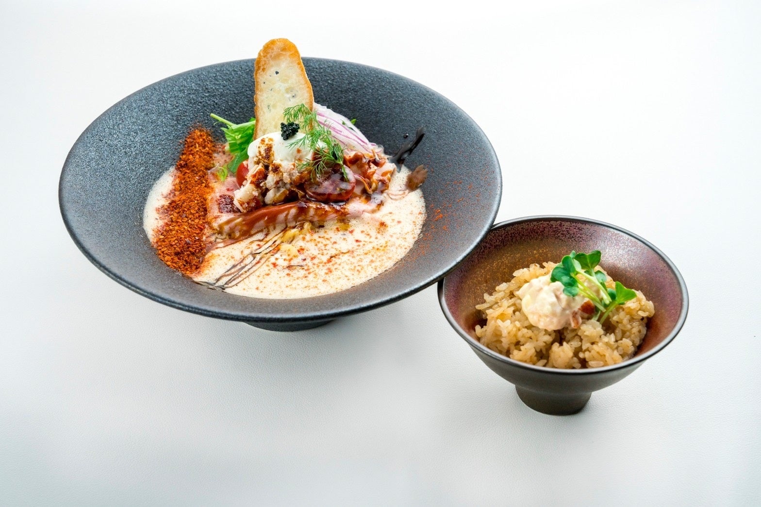 まずはそのまま召し上がって頂き、さらにラーメンのスープをかけて海老リゾット風にと、2つの味をお楽しみ頂けます。