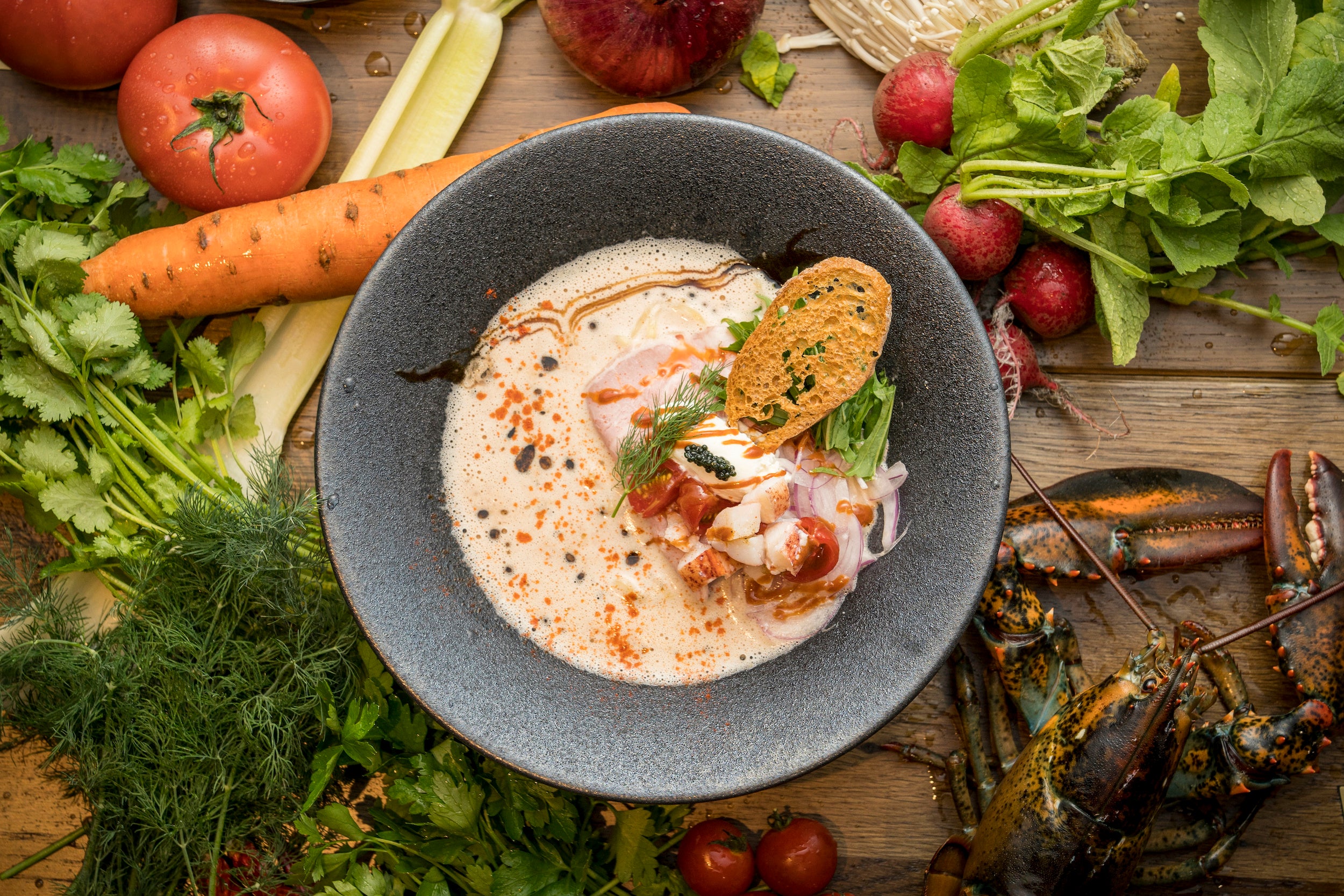 フレンチ歴14年の技術を持つシェフが、オマール海老の旨味が凝縮された頭を贅沢に使用し濃厚な出汁を抽出。