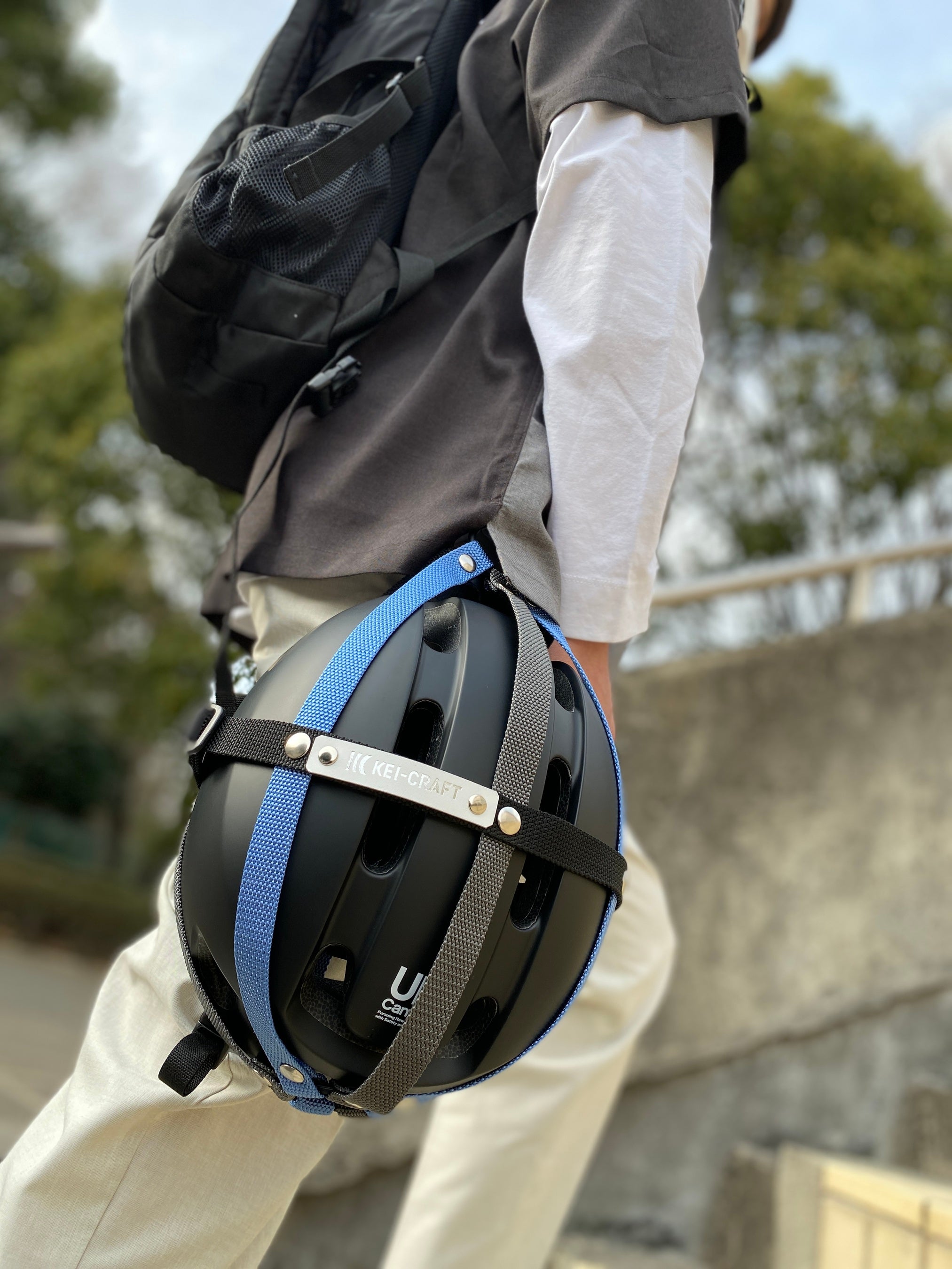 4/1~のヘルメット努力義務化に伴い「持ち歩けるヘルメットホルダー」誕生