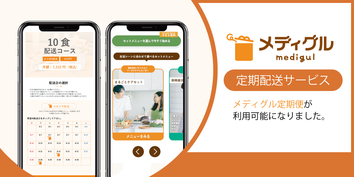 メディグル株式会社が提供する、シェフ・医師・管理栄養士が監修の美味しい機能食の冷凍弁当”メディグル”にて、定期購買プラン「メディグル定期便」を販売開始致しました。
