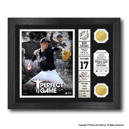 当商品は、日本プロ野球史上稀にみる大記録『28年ぶり・16人目』である完全試合を達成した佐々木朗希投手の栄誉を称える貴重なアイテムとなっております。史上最年少(20歳5か月)での完全試合(Perfect Game)達成・13連続奪三振(NPB新記録)・1試合19奪三振(同タイ記録)を記録するなど、まさに「令和の怪物」を体現した完全試合。千葉ロッテマリーンズファンのみならず、全野球ファン垂涎のアイテムとして仕上がっております。
