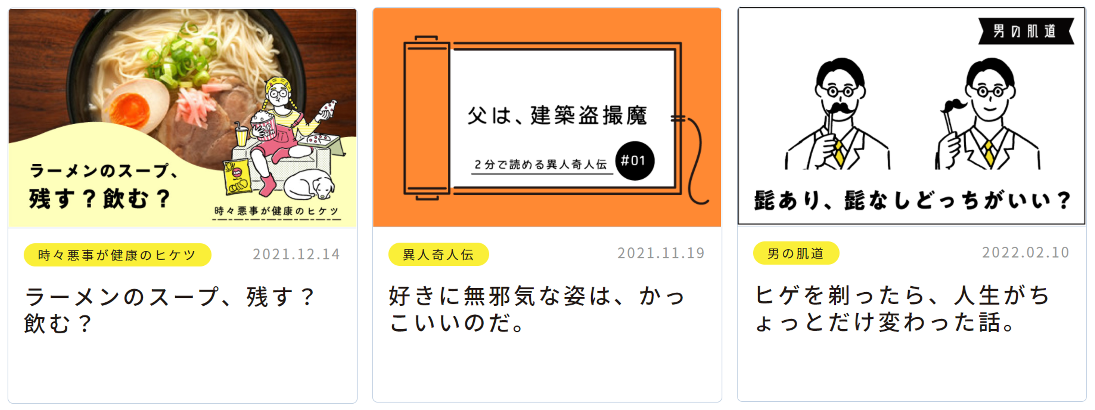 新たに「よみもの」と呼ぶコンテンツを追加し、週に1回程度「ものがたり」を配信していきます。「ものがたり」のほとんどを、社員が自ら企画、作成していていきます。