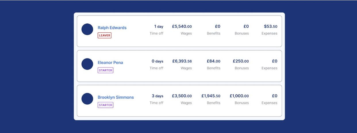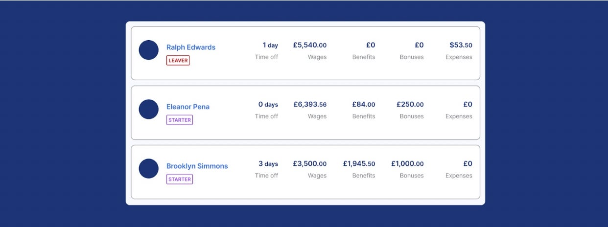 チーム全体をひとつのプラットフォーム上で管理できるため、すべての従業員の雇用形態、拠点、役割について標準化されたレポートを使用して、データに基づいた給与計算の意思決定を行うことができます。ブラジルの社会保険料の内訳でもイギリスの年金コストでも、ひとつのダッシュボードですべてを確認できます。