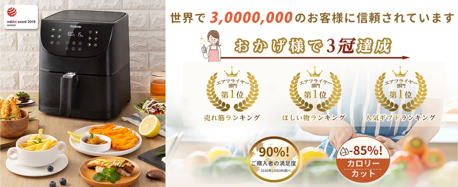 COSORIノンフライヤーは、アメリカ・ドイツ・カナダを含む9カ国で販売されており、2019年から現在まで、アメリカAmazonのノンフライヤー部門でベストセラーとなりました。