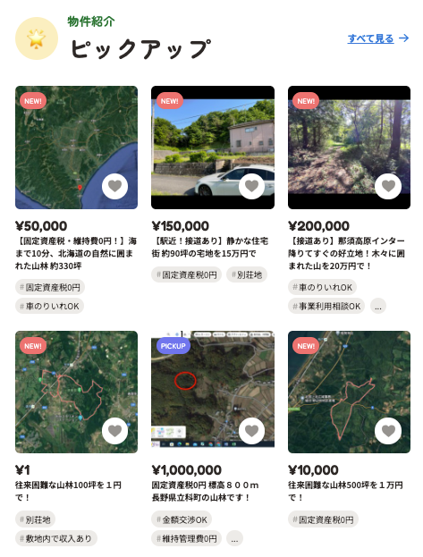 "#固定資産税0円""車のりいれOK"など、買い手の皆さんの検索性を向上させるタグ検索機能が追加されました。