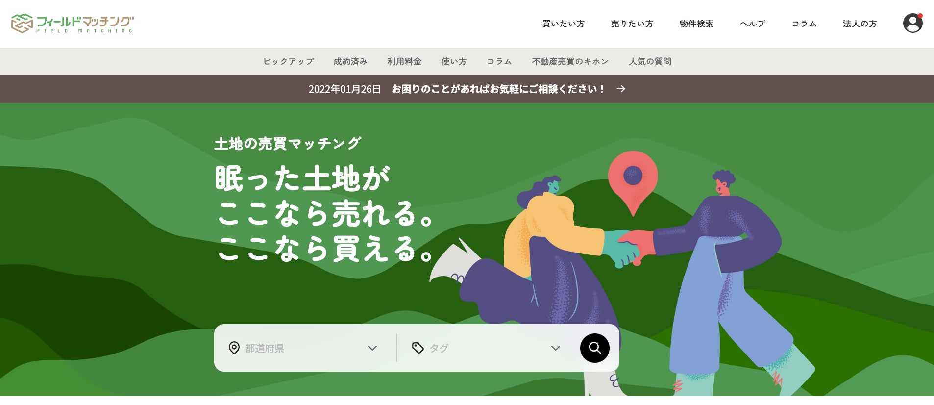 “要らない土地を売りたい人“と”自分だけの土地が欲しい人“を繋げる、土地の売買マッチングサイト「フィールドマッチング」が大幅リニューアルいたします!