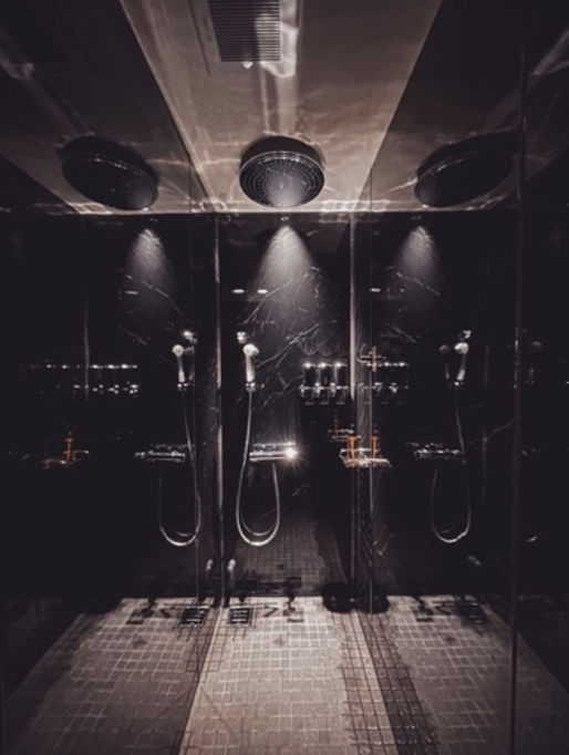 水風呂の代わりに、水温調整ができる通常シャワーヘッド「ミラブル」と、チラーシステムでキンキンに冷やされた冷水が放出する大型オーバーヘッドシャワー(グロエ製)をご用意しております。ストレートシャワーだけでなく、ミスト状に切り替えてもお楽しみいただけます。
