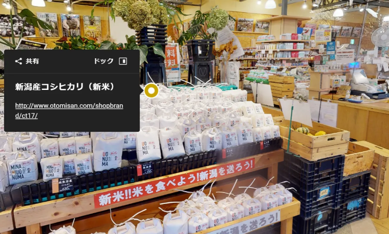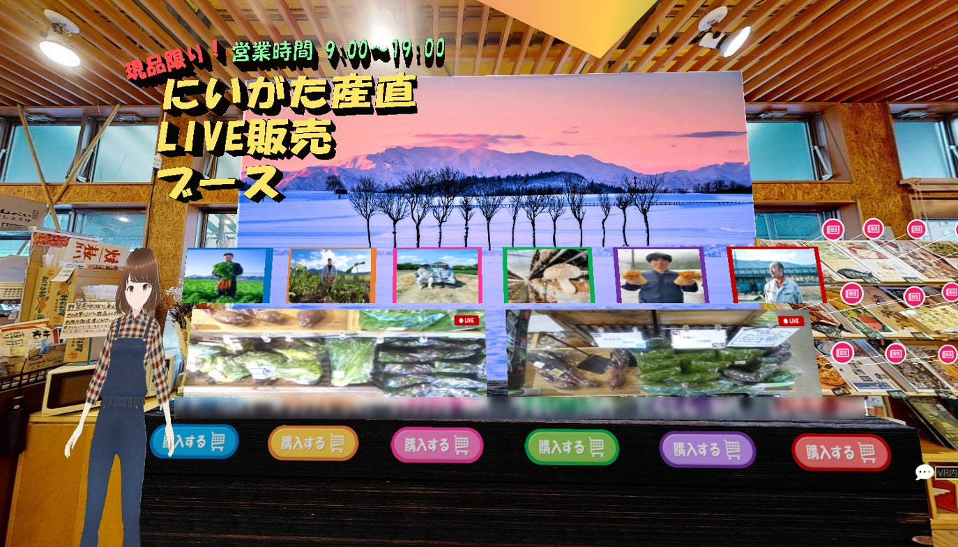 新潟市ピアBandaiに立地する産直市場お冨さんの店舗を3DVR化、既存のECシステムと連携させることにより現地へ足を運ばなくともウィンドウショッピングが可能です。