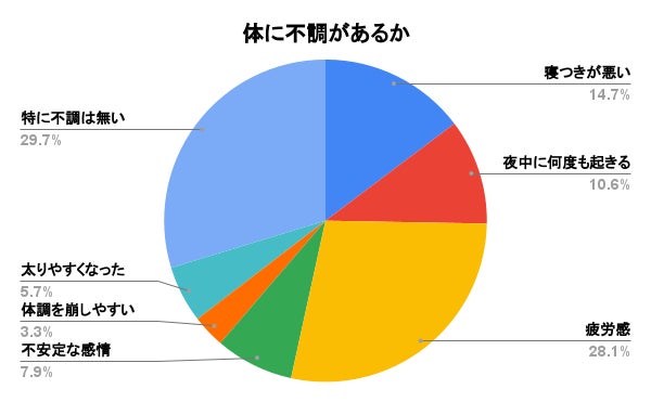 - 睡眠の悩みでは、寝付きが悪いと悩む人が多い