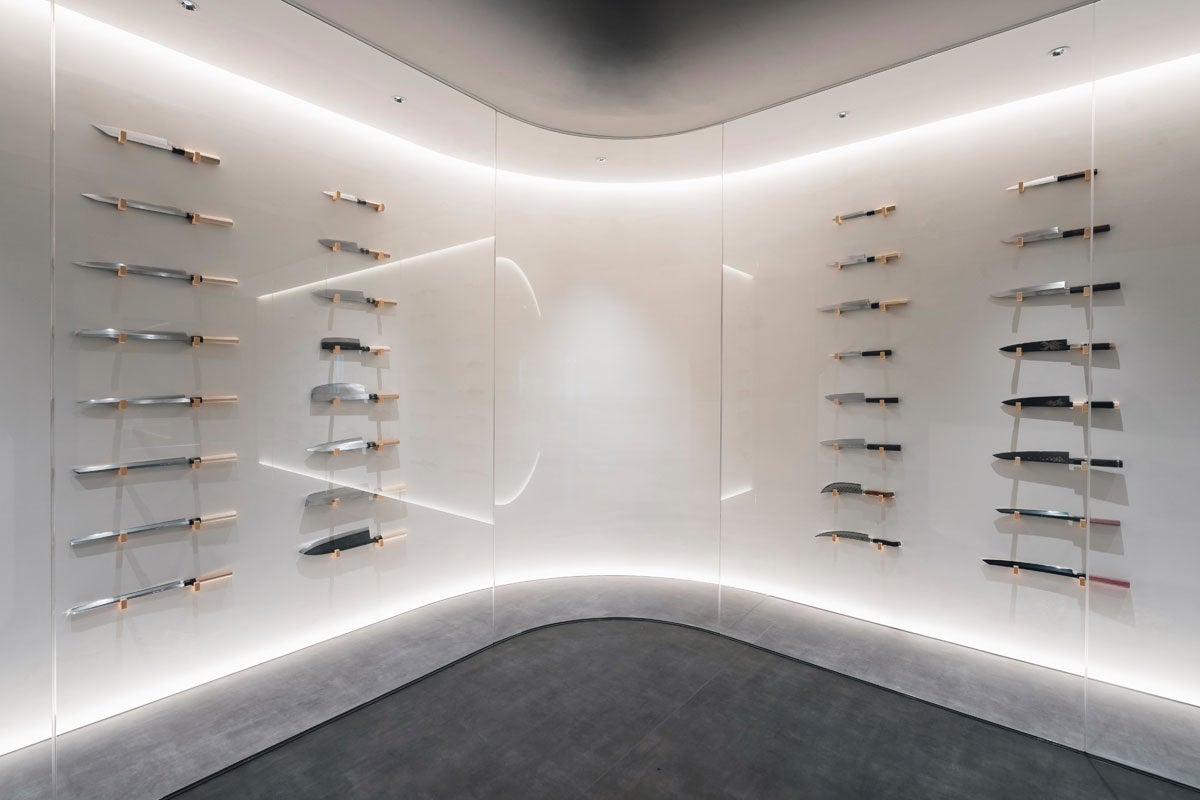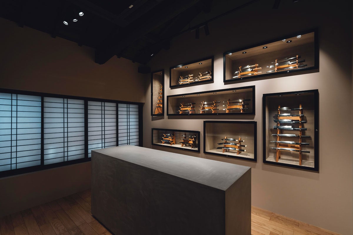 - 1階:壁面に約100種類の堺包丁を陳列+販売スペース