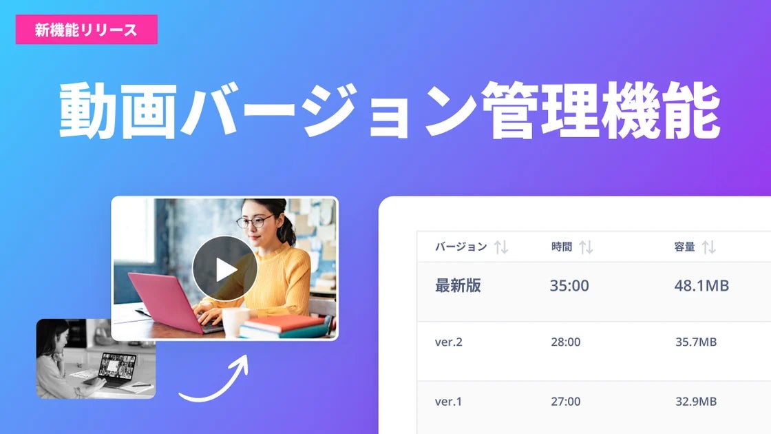 動画コンテンツの運用において、多くのユーザー様から「アップロード済みの動画を新しいバージョンに差し替えたい」「過去のバージョンも保管しておきたい」といったご要望を頂戴しておりました。これらのニーズにお応えするため、今回のアップデートでは包括的なバージョン管理システムを実装いたしました。