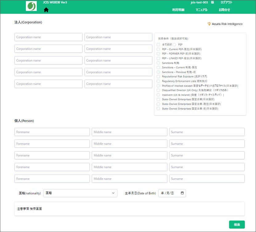 本件により、2022年5月より提携を開始した『Acuris Risk Intelligence』(以下、ARI社)の海外リスク情報を、『JCIS WEBDB Ver3』のシステム上から即時的に検索することが可能です。
