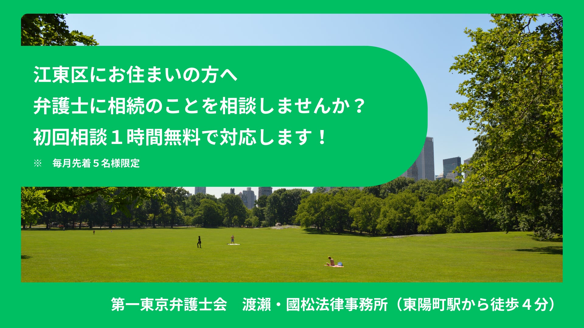 【相続分野】【弁護士が対応】江東区にお住まいの方からの法律相談を初回1時間無料に