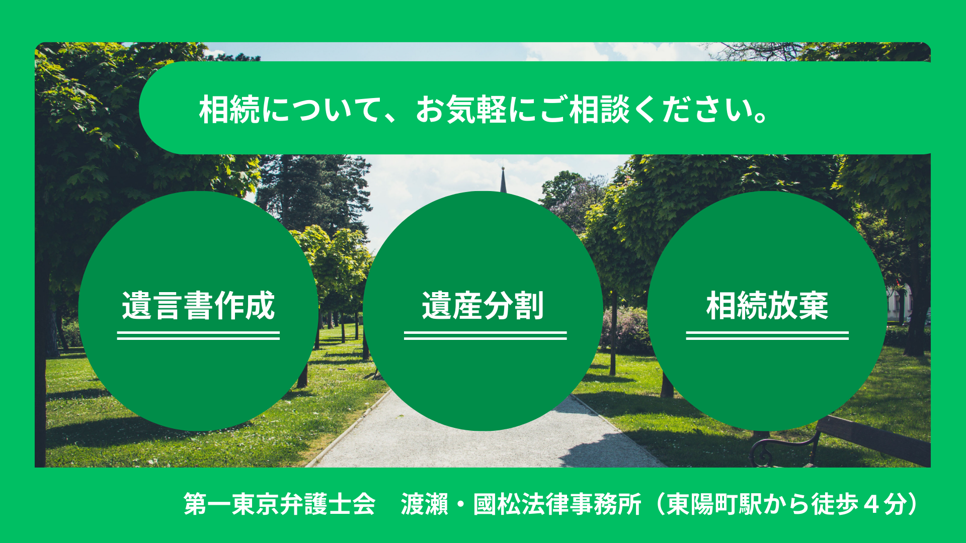 江東区にお住まいの方で、相続放棄をお考えの方も、ぜひ一度、渡瀬・國松法律事務所までご連絡ください。