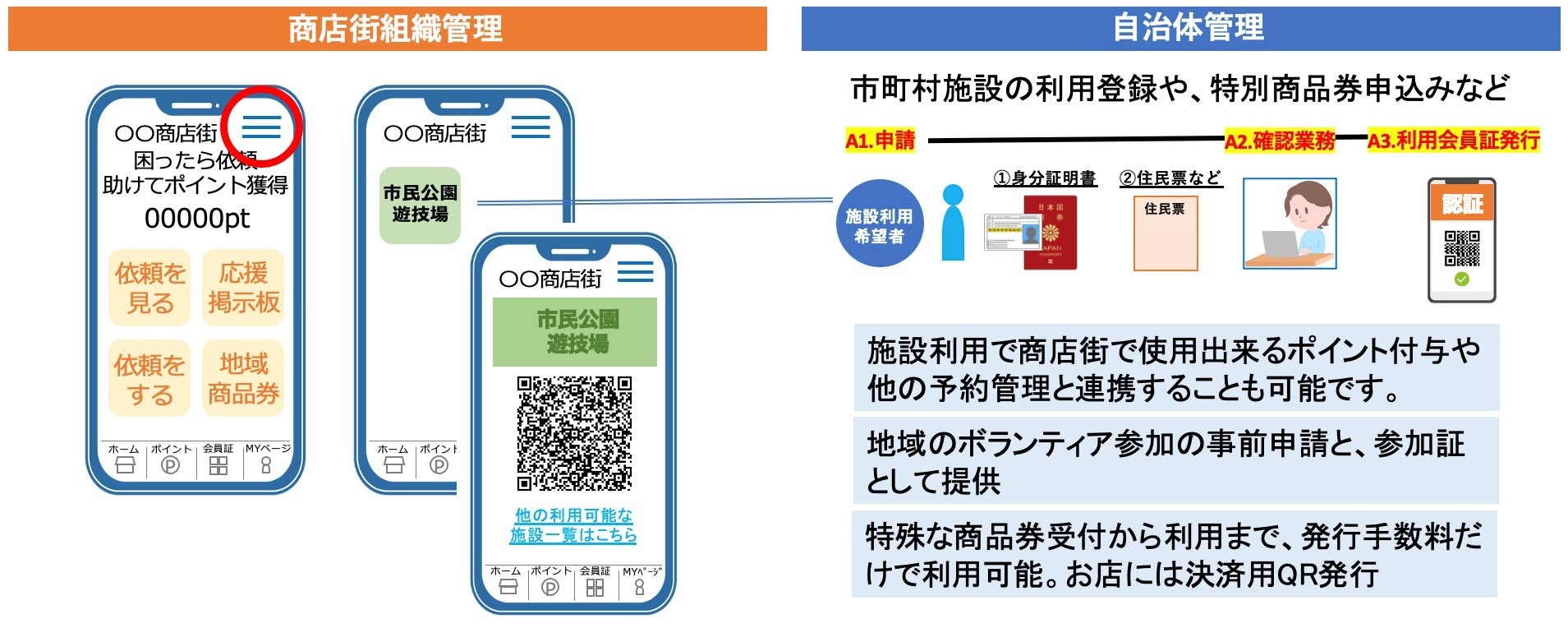 ・先にリリースしました、地域おこしツールとの連携が可能であり、対象店に来店した際に、ポイント付与や、会員特典を提供することも可能です。利用者向けの特典を用意して、来店誘導なども可能となります。