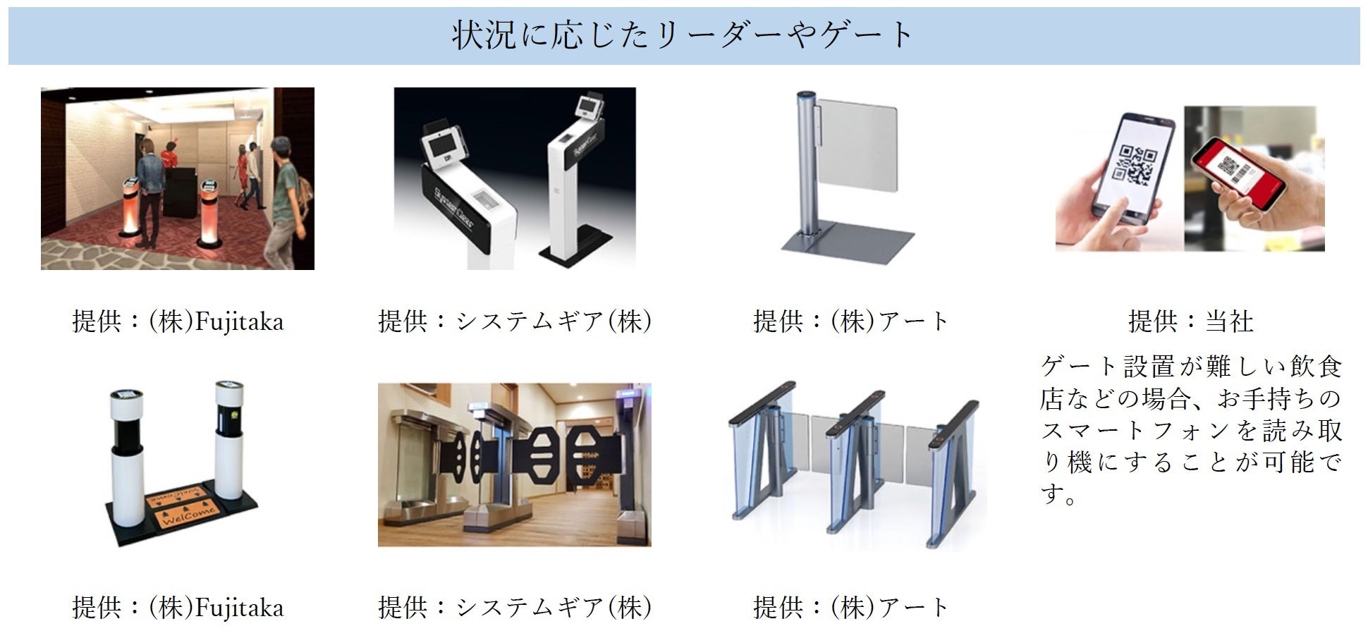 飲食店などゲート設置は難しい場合には、お持ちのスマートフォンで読み取り可能です。