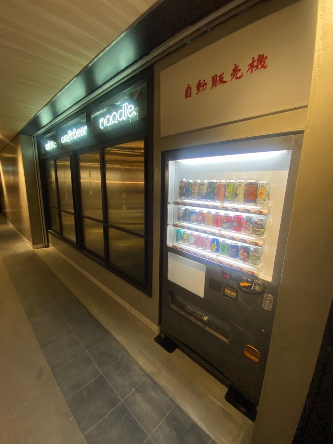 駅通路に面した一角には、缶のクラフトビールを揃えた珍しい自動販売機を設置いたします。