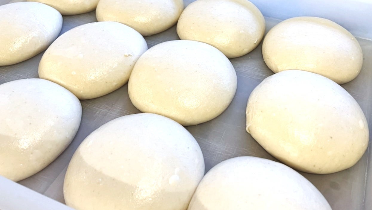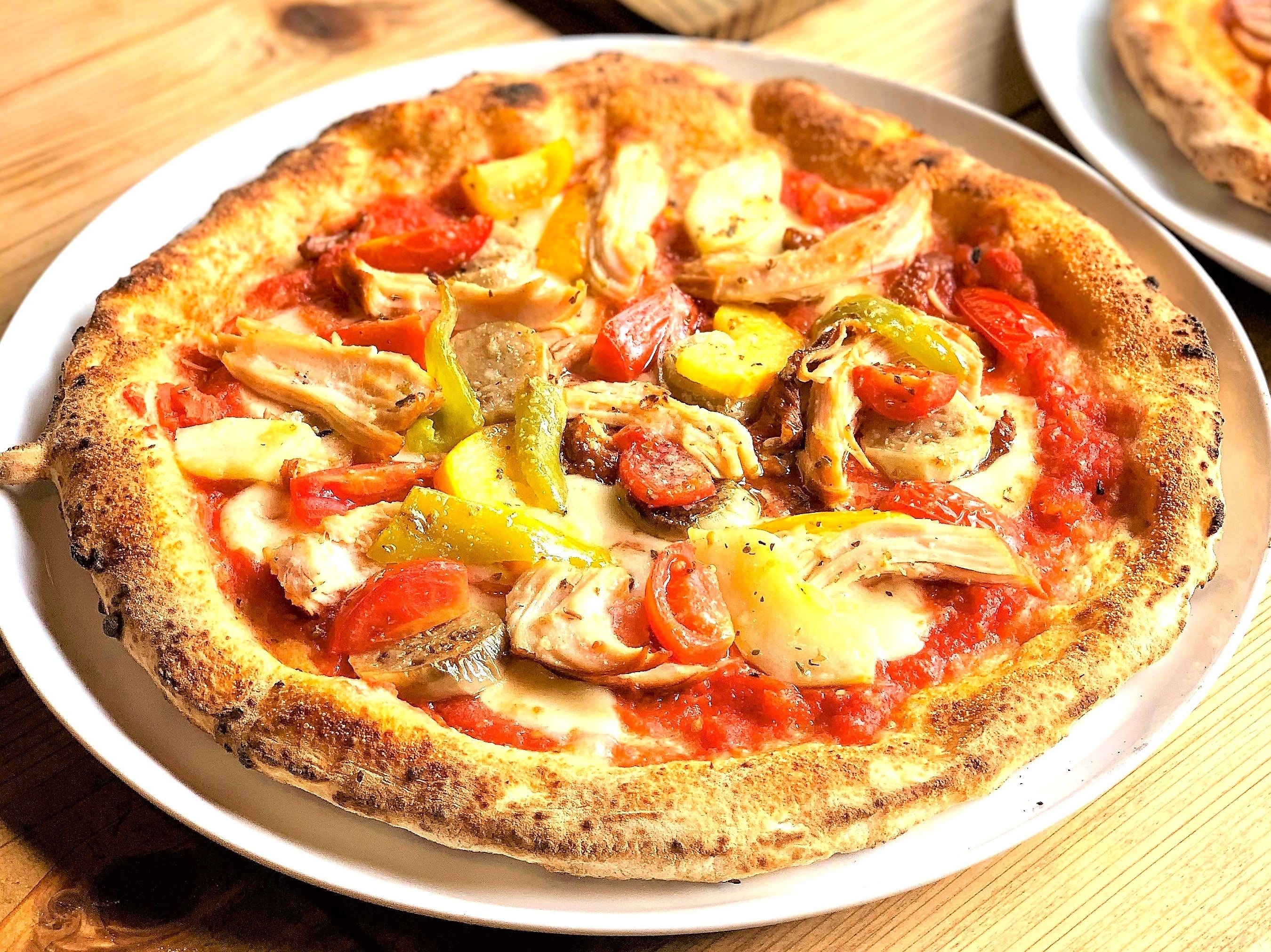 ピッツァの生地は、カプート社(カンパーニャ州ナポリ)の最高級ピッツァ専用粉と国産(北海道)のナポリピッツァ専用粉をブレンドし、イタリアの天日海塩、国産天然酵母、水のみで作ります。