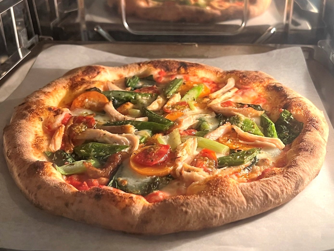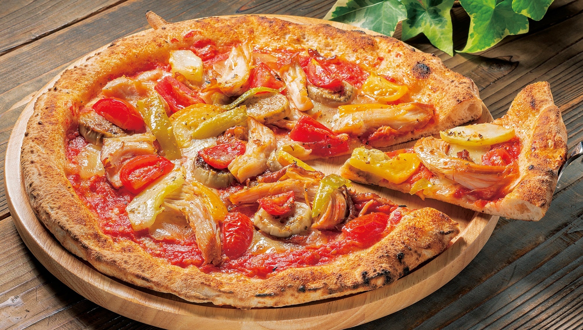長時間熟成した生地を当社の職人が手で伸ばしてトッピングし、500度近い薪窯を使って90秒で焼き上げ、すかさず-30度の高性能瞬間冷凍機に入れて瞬間冷凍することにより、生地の旨さと香りを閉じ込め、ふんわりした食感を冷凍ピッツァで再現しました。