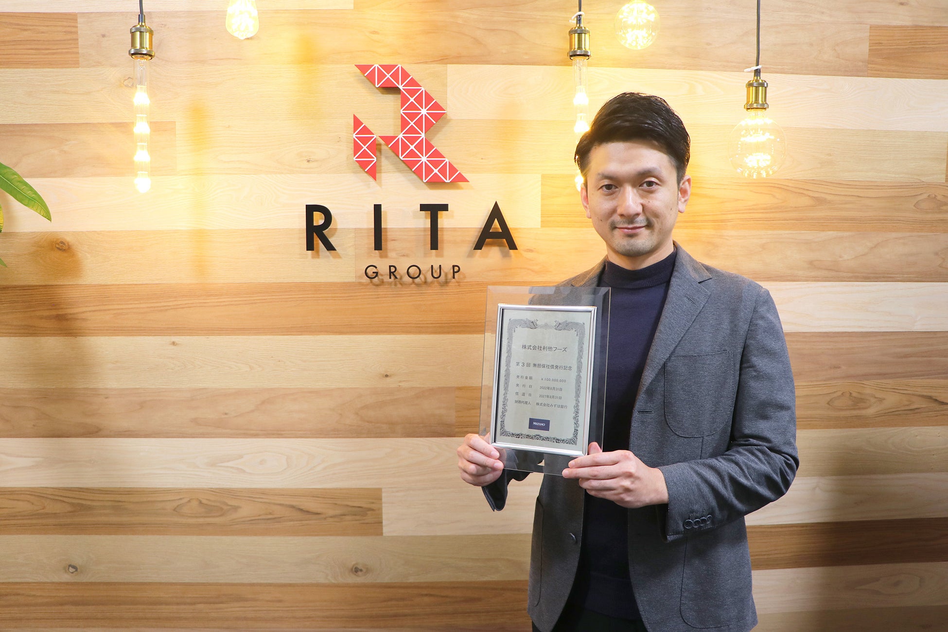 RITAグループホールディングス株式会社の事業会社、株式会社利他フーズ(本社:熊本県熊本市 代表取締役社長:猪本真也 以下「利他フーズ」)は、令和4年8月31日に、株式会社みずほ銀行(本店:東京都千代田区大手町 以下「みずほ銀行」)を財務代理人として第3回無担保社債を発行致しました。