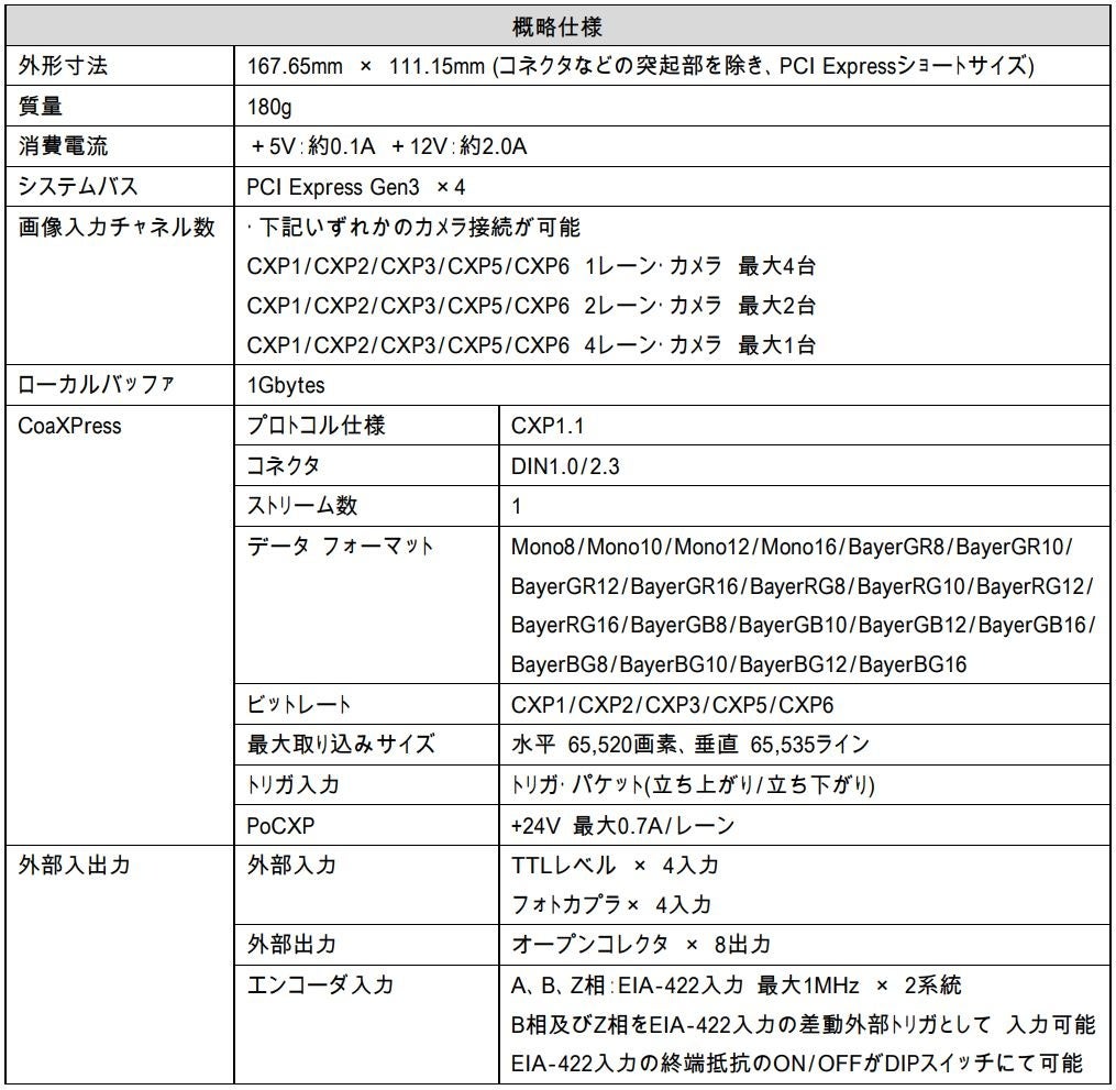 ※ エンコーダ入力は独立2チャネルです。※ JIIA CoaXPress適合試験合格。