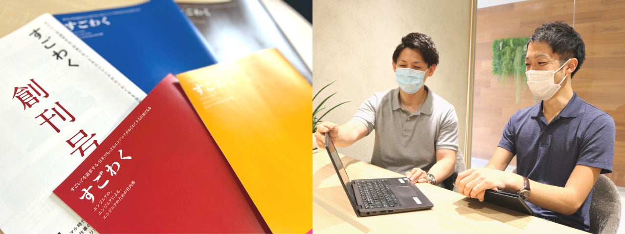 派遣先に常駐して業務に従事する社員が多いため、会社や社員を身近に感じられるように、会社の情報や社員の様子を届ける社内報を定期発行。