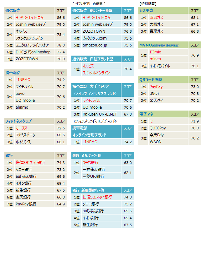 サービス産業生産性協議会は、2022年度JCSI(日本版顧客満足度指数)第2回調査として、通信販売、携帯電話、フィットネスクラブ、銀行、ガス小売、MVNO、QRコード決済、電子マネーの顧客満足度を発表しました。