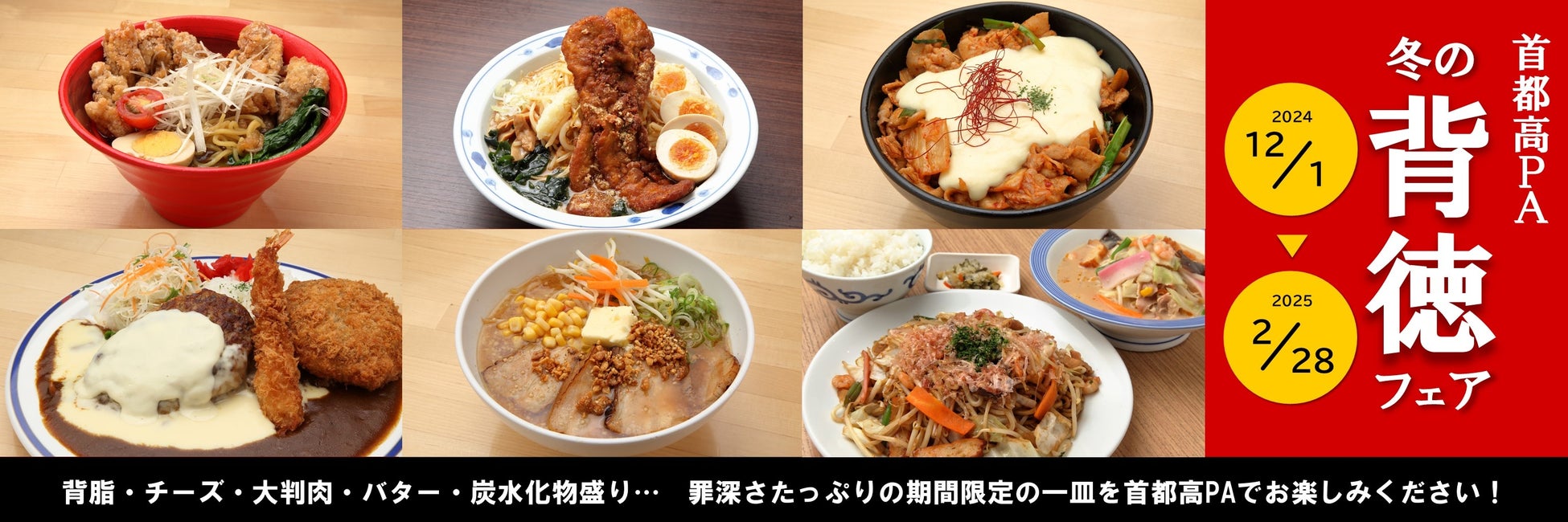 首都高PAでとろーりチーズや、こってり背脂など、罪深さたっぷり期間限定メニューが楽しめる「冬の背徳フェア」を実施!