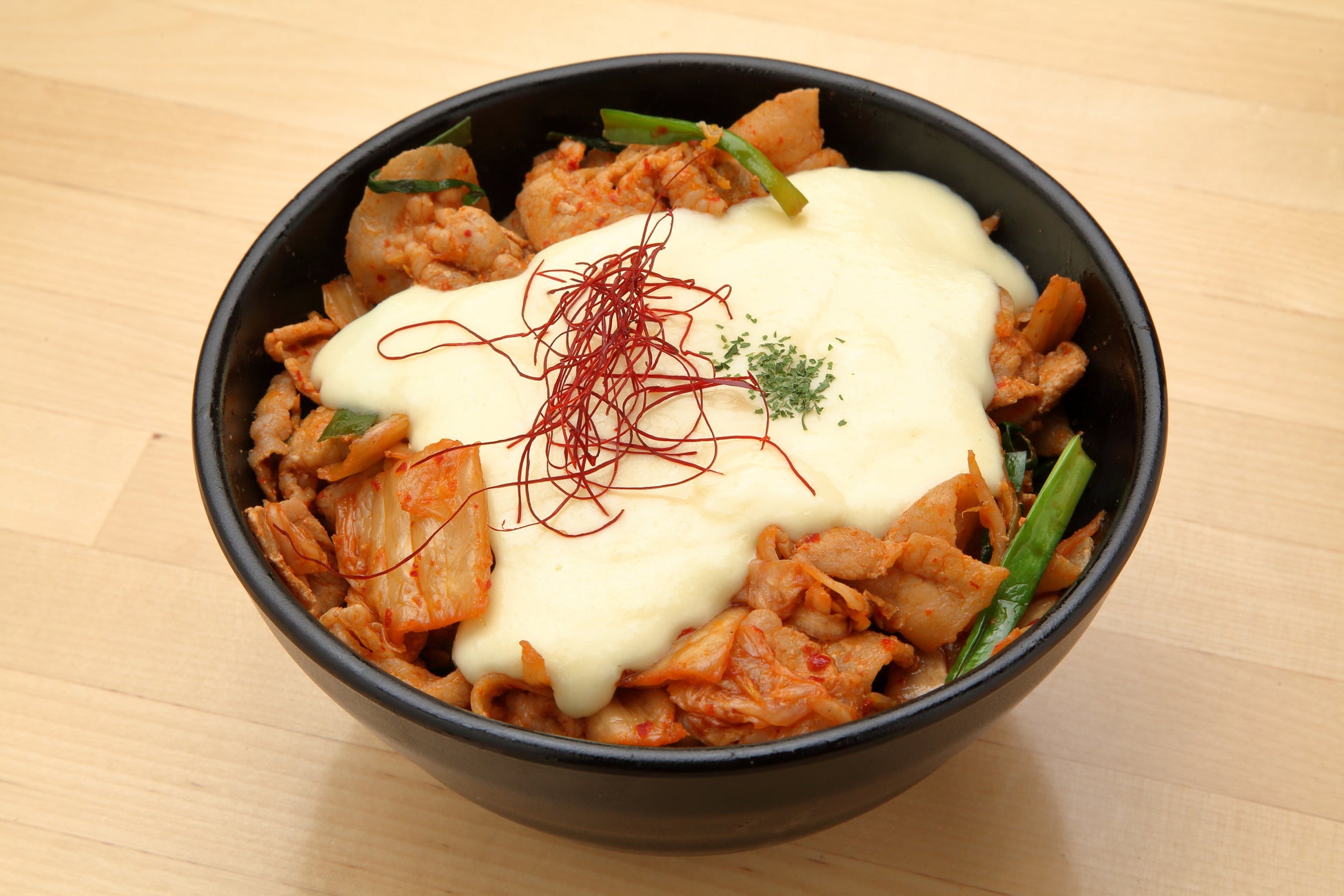 試行錯誤を重ね、丼にベストなとろ~り感のチーズを生み出した。豚バラにはごま油、醤油を隠し味として加えており、濃厚チーズと絶妙にマッチ。