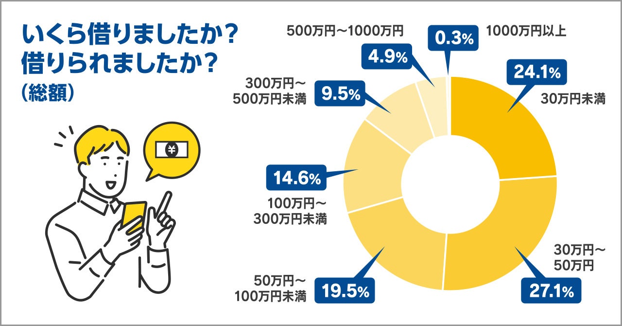 若い=収入が多くないこともあり、100万円以上を借りた/借りられたというケースはそれほど多くはないようです。