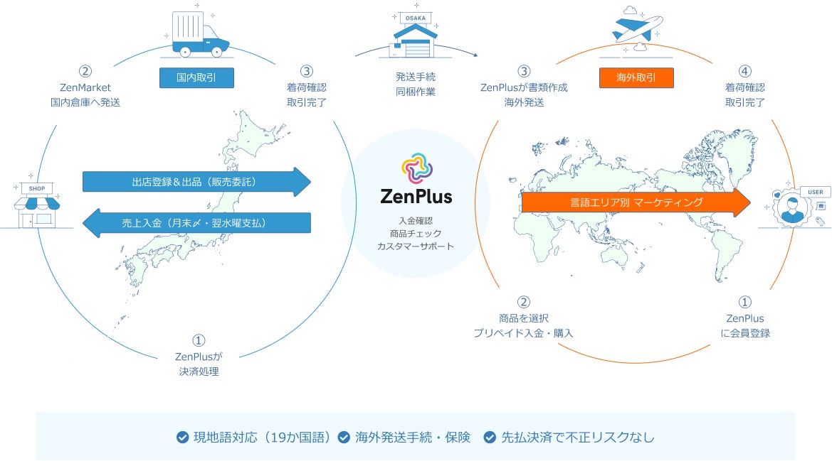 海外にいるお客様がZenPlusにて、日本国内の出店者から商品を購入することができます。