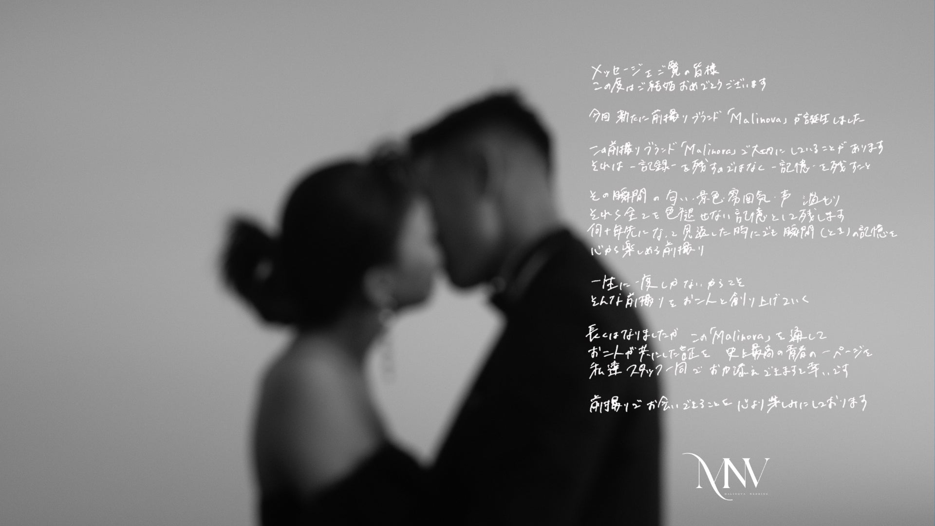 Malinovaは、「瞬間の思い出を 色褪せない記憶に」をコンセプトに、結婚式を迎えるカップルのための前撮り撮影を提供するブランドです。
