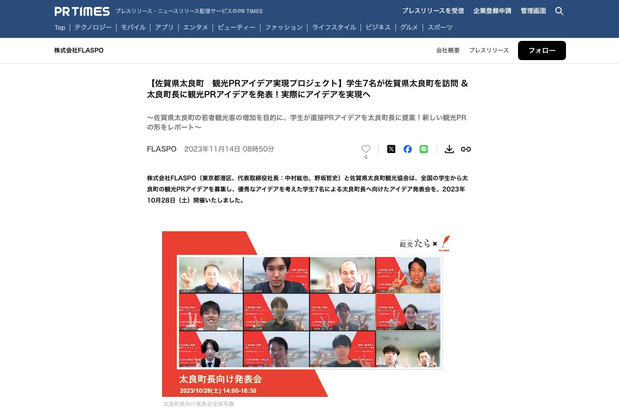 佐賀県太良町 学生観光PRアイデア実現プロジェクト に関する全てのお問い合わせは、株式会社FLASPOまでお気軽にご連絡ください。