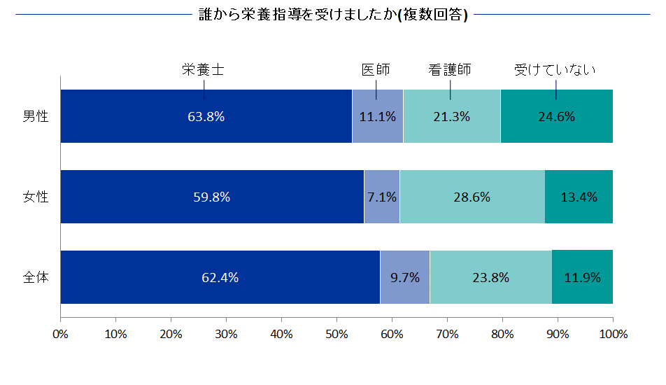 2004年のアンケートでは、術後の栄養指導についても調査しておりますが、全く栄養指導を受けていない方が11.9%もいました。また、栄養指導が行われていても、指導者が栄養士62.4%、医師9.7%、看護師23.8%とまちまちとなっております。栄養指導は1回で済ませられるものではありませんので、手術後3年間程度は患者さんが継続的に相談できるような体制が必要であると考えています。