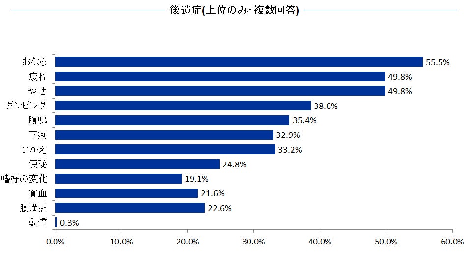 アルファ・クラブ会員に実施した術後後遺症に関するアンケート結果においては、約半数の方が術後障害に関して十分な説明を受けていない状況でした。医療制度の効率化が進み、胃がん治療が進歩したからこその新たな課題として、今後は胃切除後障害に関する指導の充実も非常に重要であると考えられます。