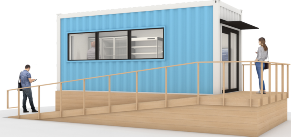 店舗については、入店のしやすさを重視の上、頑丈で災害時のフェーズフリーとしても運用できるスタイリッシュな「コンテナ」を利用しシンボリック且つ魅力ある内外装としております。