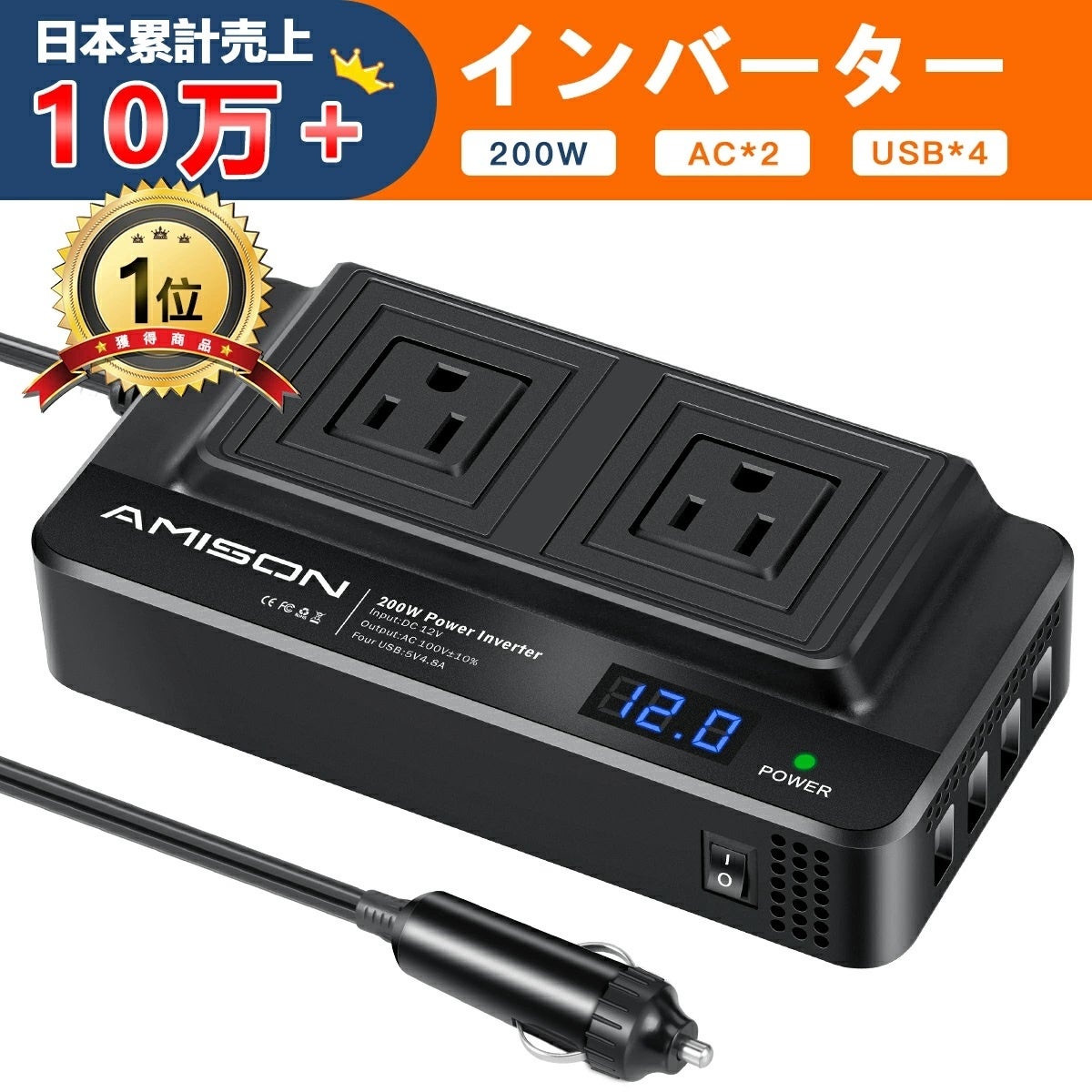 200WインバーターはDC12V電源をAC 100Vに変換し、複数の電気製品を同時に充電可能。
