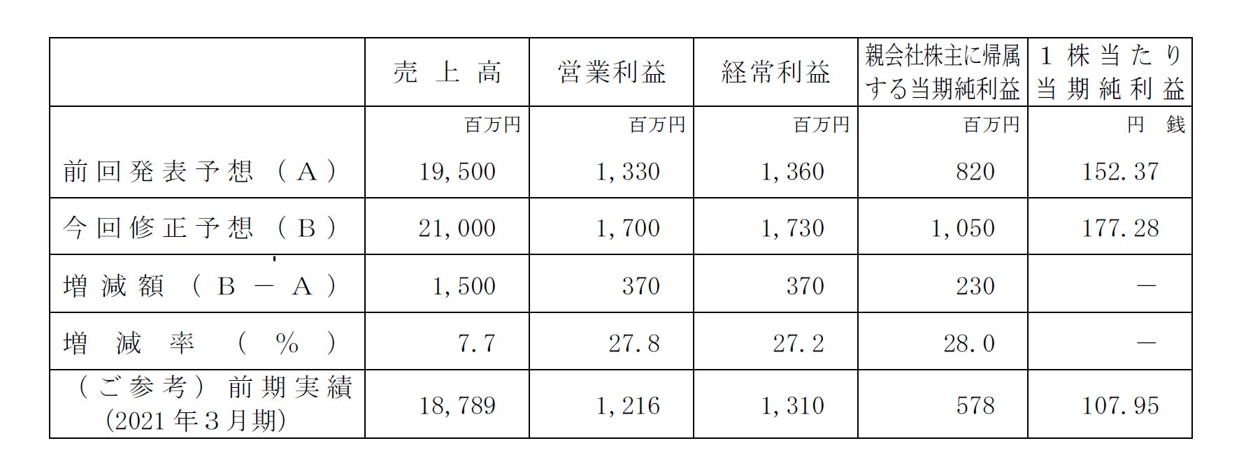 (1)2022年3月期通期連結業績予想数値の修正(2021年4月1日~2022年3月31日)