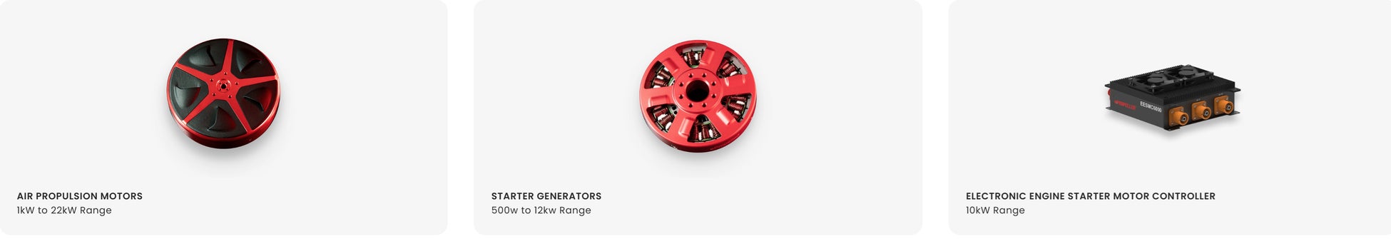 ePropelled社の「Starter Generator」シリーズは当社のガスタービン発電機(ターボジェネレータ)であるDRAGONに組み込まれています。 この製品はUAV(Unmanned Aerial Vehicle)用ですが軽量かつ精密な組立による高回転対応と電気的出力特性がガスタービンによるハイブリッドシステムに最適であったことから採用しました。
