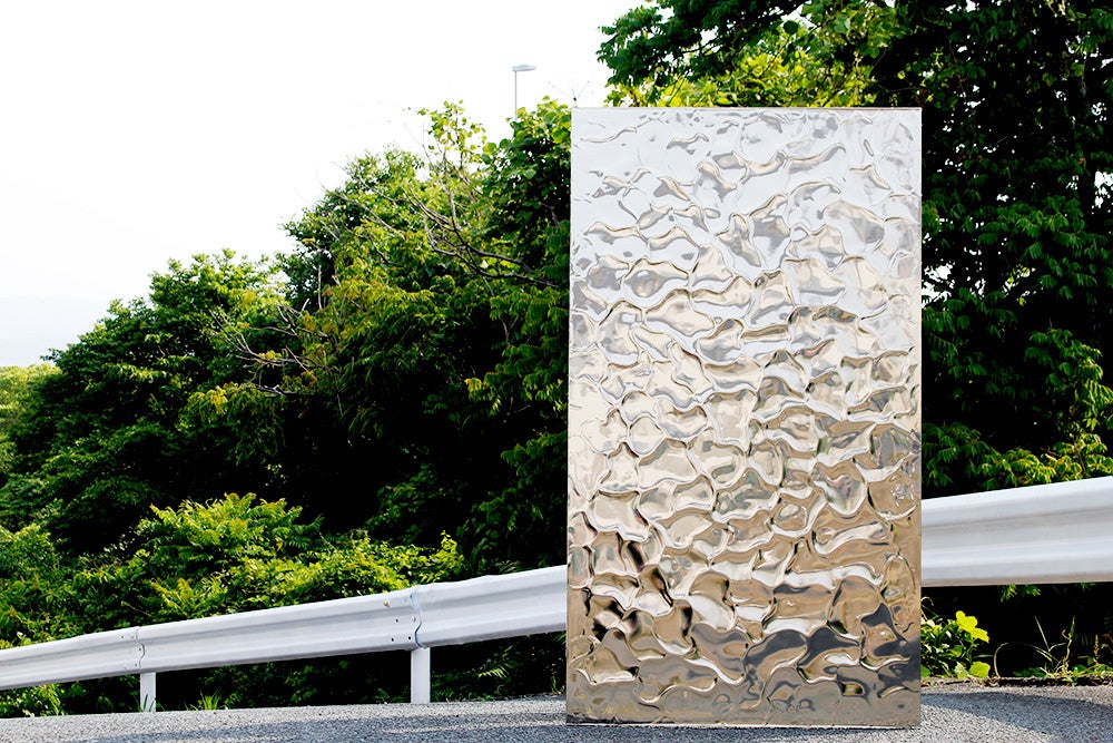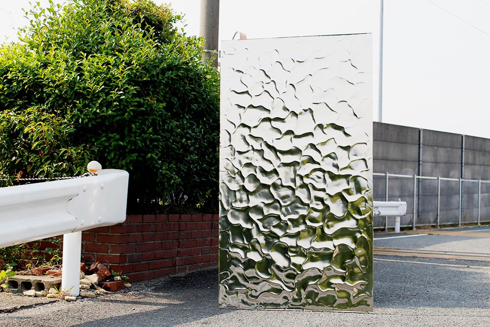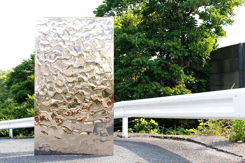 風景を揺らめきながら映し出し、煌めく光を映し出すミステリアスチタンミラー リップルスが誕生しました。 これまでステンレス製では困難であった過酷な環境でも美しい意匠を提供できることが可能となりました。