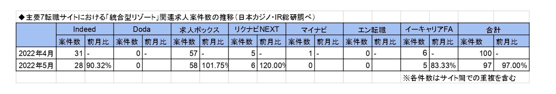 「カジノ」「統合型リゾート」に関する求人の最新調査(2022年5月版)を公表-日本カジノ・IR総研