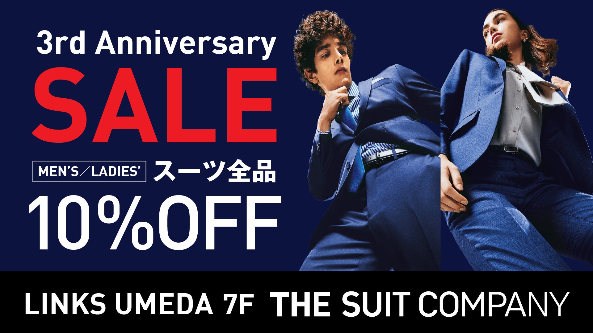 THE SUIT COMPANY LINKS UMEDA店ではリニューアルオープンからの3周年を記念し3rdAnniversarySaleを10/1(土)より開催致します。
