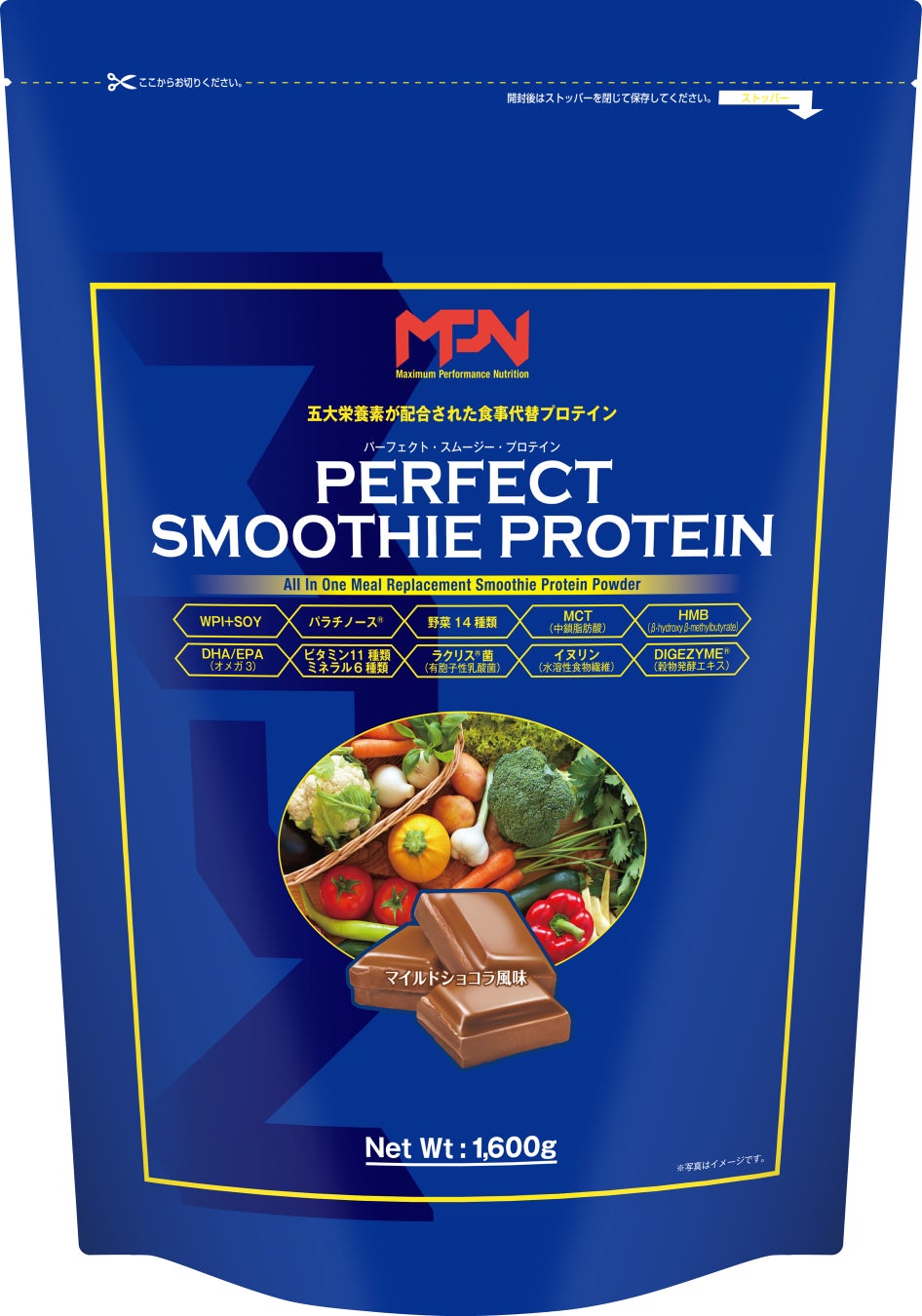 忙しい時の食事代わり・ダイエット置き換え・バルクアップ捕食等のサポートに、発売10年のロングセラー、スムージータイププロテイン!「パーフェクト・スムージー・プロテイン」マイルドショコラ風味誕生!!