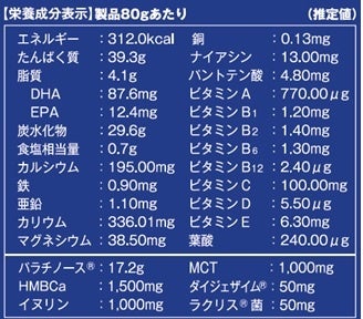 1食分につき付属スプーン5杯(約80g)を目安に、350ml程度の水に溶かしてお召し上がりください。